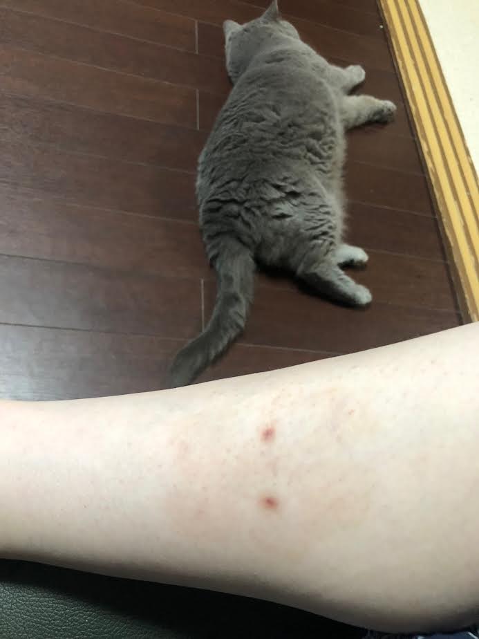 突然、『にぎゃーーー!!』と叫びながら、私のふくらはぎにガブリ!!!
